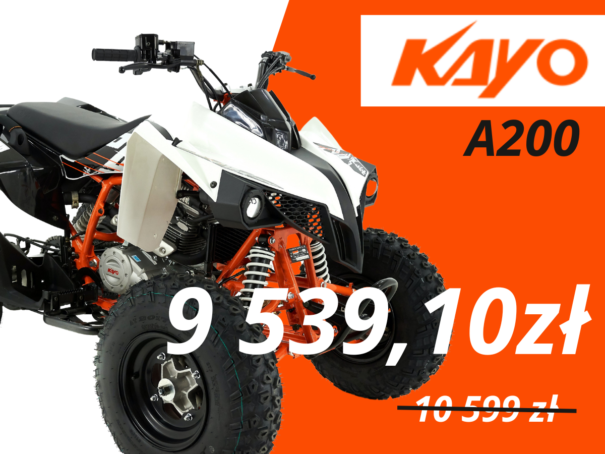 Wykorzystaj lutową szarówkę, by ugrać do 10% rabatu na ostatnie sztuki quadów KAYO z rocznika 2025. Kupując teraz, masz quada pod domem i parę tysięcy złotych w kieszeni na paliwo lub akcesoria.